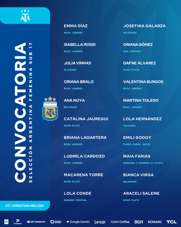 Las convocadas de la Selección argenitna Sub 17 para los amistosos vs. Uruguay: